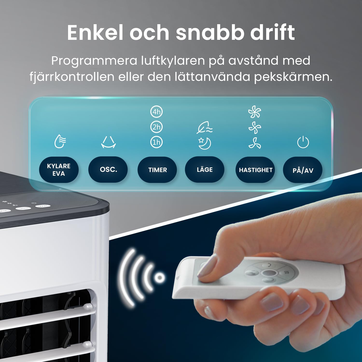 Easy to use remote control & timer: Enjoy full control of this air cooler and the different operating modes, 7-hour timer and three fan speeds using the easy-to-use control panel or remote control.