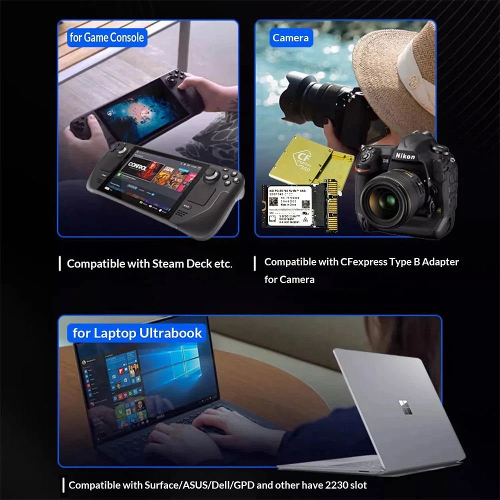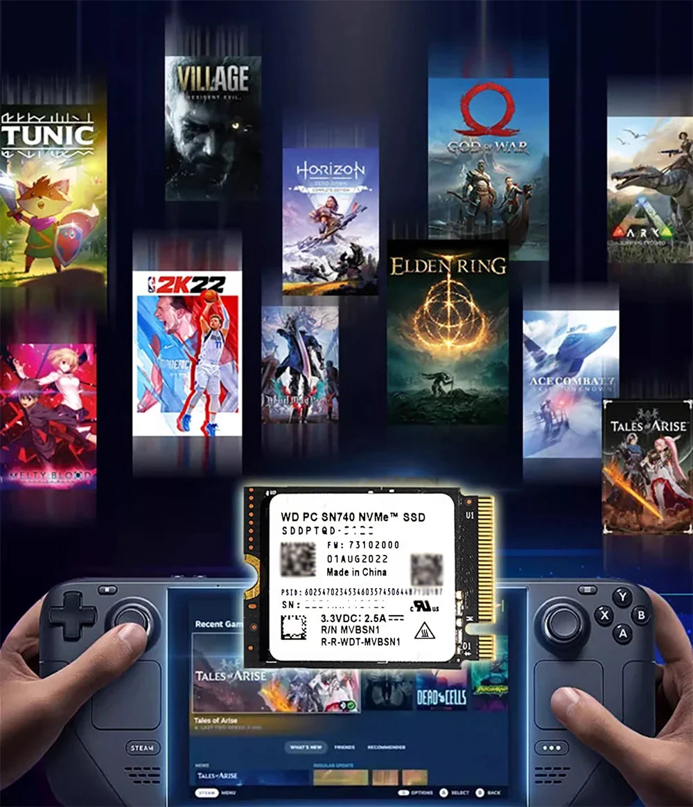 Elevate your data storage experience with the Western Digital WD SN740 SSD, offering up to 2TB storage capacity for your data and applications. Equipped with advanced PCIe 4.0 X4 NVMe technology, this SSD ensures high-speed data transfer and improved performance. Designed for industrial computers, Steam Deck, Microsoft Surface ProX, and other devices, this SSD features an M.2 B interface type for wide device compatibility. As a solid-state drive, it provides superior speed and reliability compared to traditional hard drives. Its compact and lightweight design makes it easy to install and perfect for portable devices. Achieve fully immersive gameplay with sustained high-performance bandwidth and throughput for heavy-duty applications in gaming, graphics, and data analytics. With fast PCIe Gen4 NVMe 1.4 SSD technology, experience high-speed sequential read/write speeds up to 5150MB/s and 4900MB/s, specially designed for new Gen4 x 4 PCIe slots. Upgrade options with compatible devices include Surface Pro 8, Surface Pro 7, Surface Pro X, Surface Laptop 3, Surface Laptop 4, Surface Laptop Go, Surface Book 3, DIY CFE camera card, Steam Deck handheld consoles, Apple computers, ASUS ROG series notebooks, GPD Win Max 2, Dell notebooks with a 2230 interface, Dell models 2230 interface, and more. Please note that this SSD does not work with SP8, and compatibility issues may cause constant crashes.